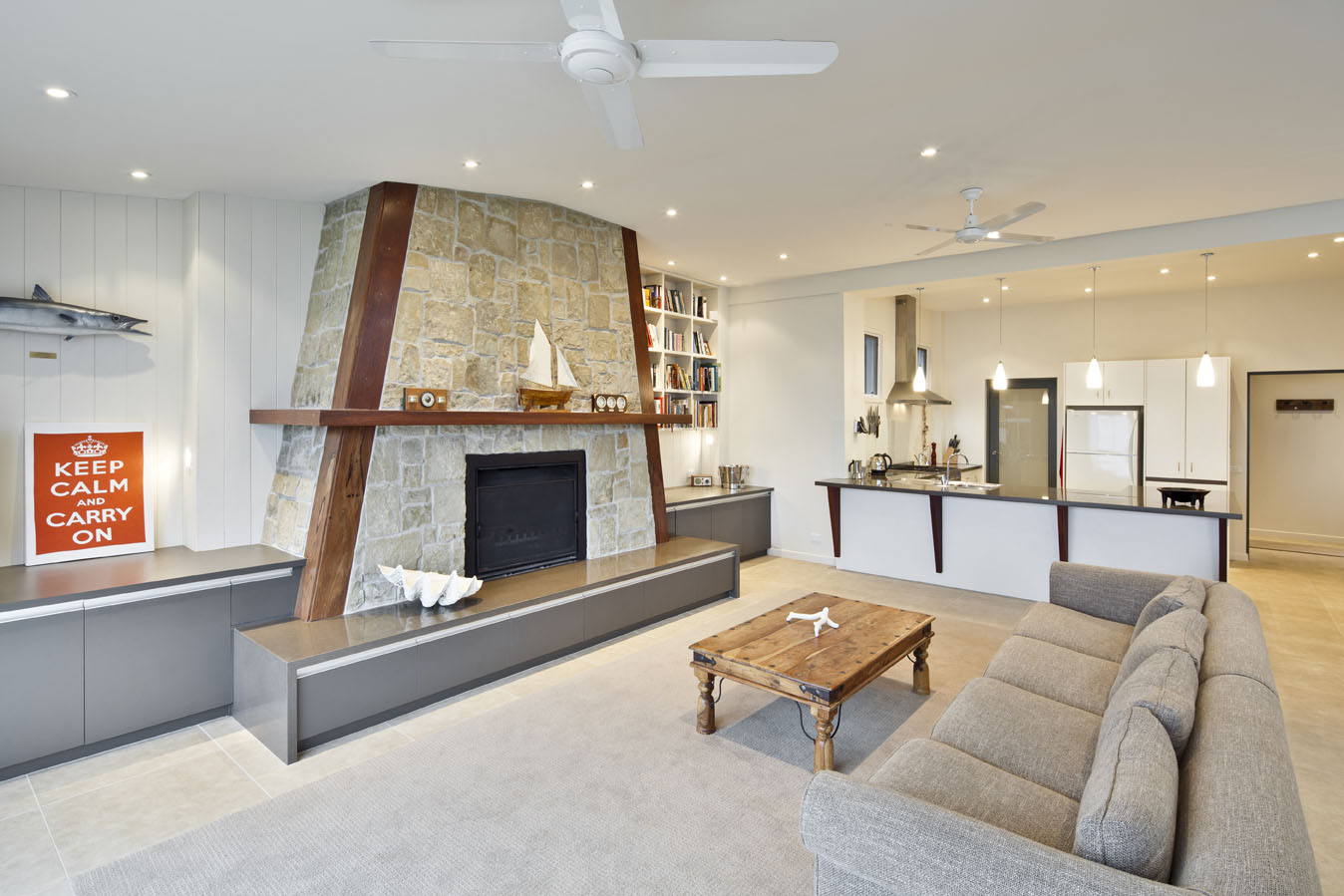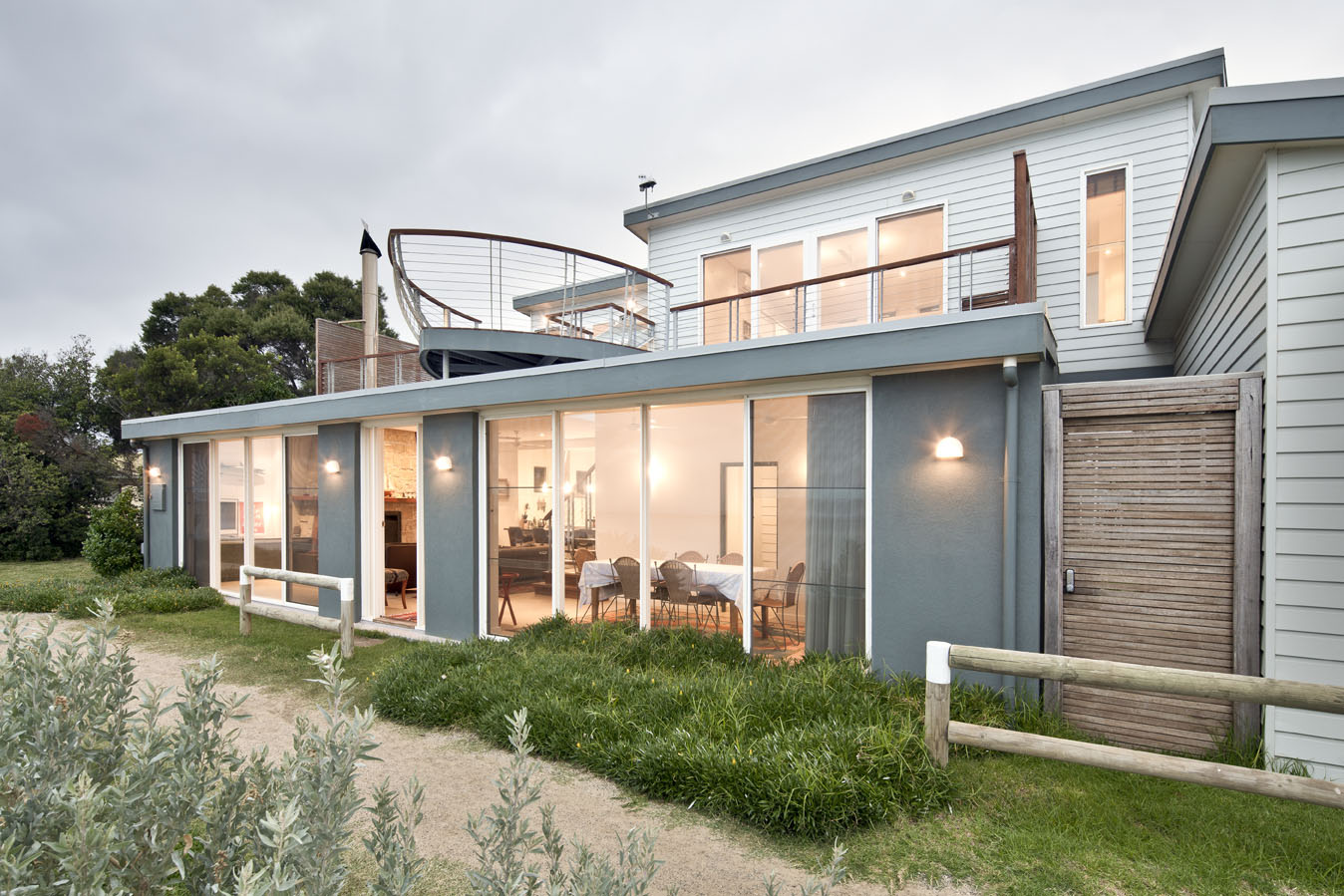 This project involved the gradual implementation of a Master Plan for a beachfront property on the Bellarine Peninsula. This included the renovation of the Guesthouse, reconstruction of the Boatshed and refurbishment and additions to the Main House, including the provision of a First Floor Parent’s Retreat with a dramatic “boat prow” balcony giving panoramic views of Port Philip Bay with the Melbourne City skyline on the horizon.