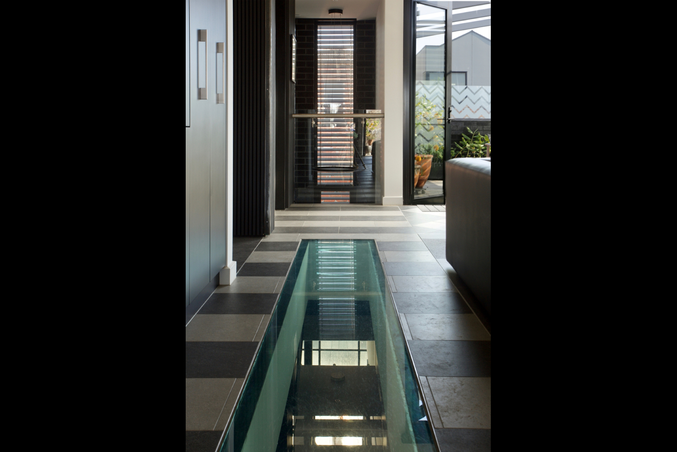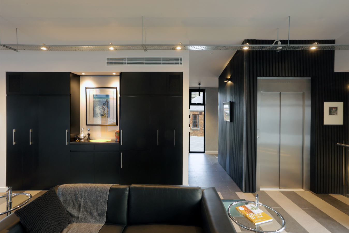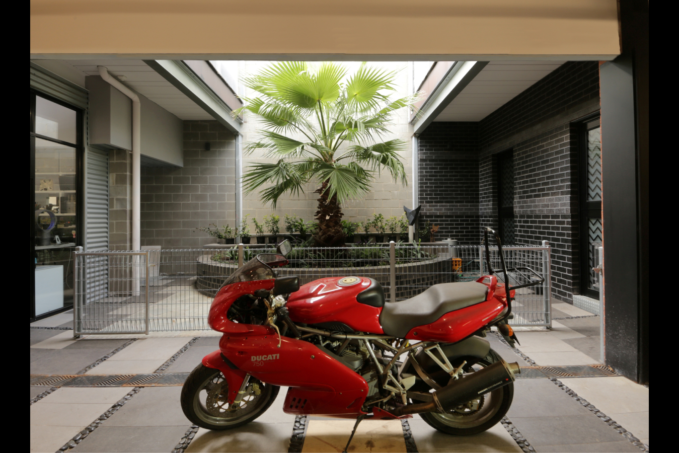 The Ground Floor now comprises the Entry space that services VHA's office, and the 2 level Apartment above. Blockwork, exposed steel, exposed bondek ceilings with cable trays used for lighting and high ceilings are utilised throughout the Ground Floor interior to keep within the industrial characteristics of the existing red brick factory. The rear of the Ground Floor houses a generous 3 car Garage and Storage Rooms.